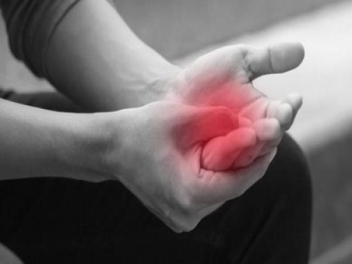 男子患扣扳機的手指、 關節炎、 手腕疼痛