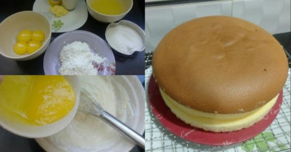2. 接著把篩過的材料(B)加入涼了的做法(1)裡,攪拌均勻。再加入材料(C)的蛋黃,攪拌均勻,待用。