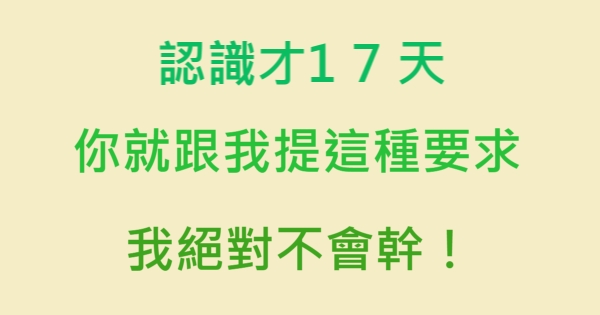 認識才17天,你就跟我提這種要求!我絕不幹!