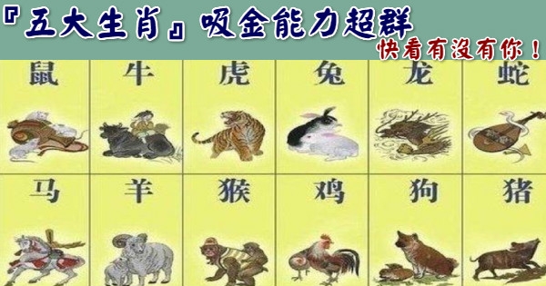 那麼,今天來讓我們看看,十二生肖中,最會賺錢的是哪五個生肖?