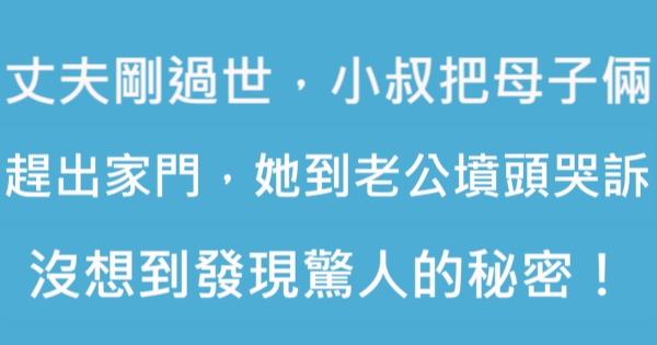 各位讀者安安阿~~我是有錢人這麼想小編Choco!今天要來說說關於「丈夫剛過世,小叔把母子倆趕出家門,她走投無路到老公墳頭哭訴,沒想到發現驚人的秘密!」,不知道大家有沒有興趣呢!一起來看看吧!
