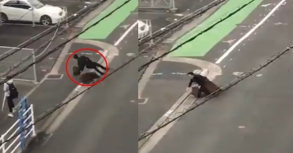 ▲被撞飛的日本上班族