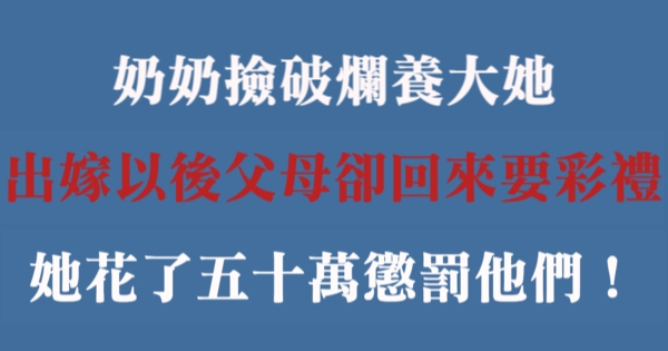 大家好,我是 Choco 今天來跟你說說 奶奶撿破爛養大她,出嫁以後父母卻回來要彩禮,她花了五十萬懲罰他們!吧!讓我們來看看!