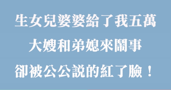 哈摟哈摟親愛的大家~~我是有錢人這麼想小編Pineapple!今天要來說說關「生女兒婆婆給了我五萬,大嫂和弟媳來鬧事,卻被公公說的紅了臉!」的事件!讓我們一起來看看吧!