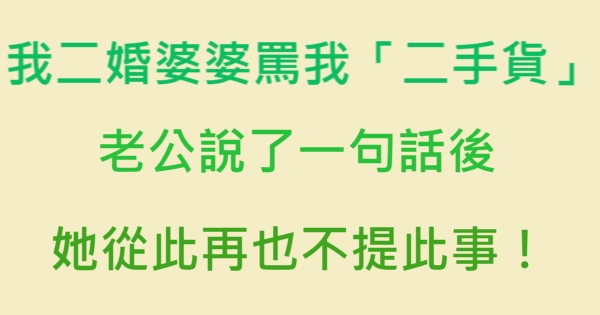 哈摟哈摟親愛的大家~~我是有錢人這麼想小編Pineapple!今天要來說說關「我二婚嫁給頭婚老公,婆婆罵我「二手貨」,老公說了一句話後,她從此再也不提此事!」的事件!讓我們一起來看看吧!