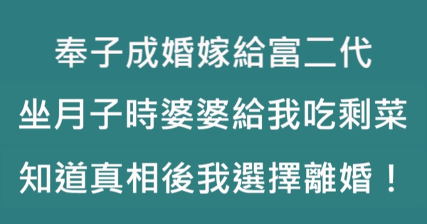哈摟哈摟親愛的大家~~我是有錢人這麼想小編Pineapple!今天要來說說關「奉子成婚嫁給富二代,坐月子時婆婆居然給我吃剩菜,知道真相後我選擇離婚!!」的事件!讓我們一起來看看吧!