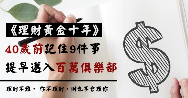 《理財黃金十年》40歲前記住「9件事」,提早邁入「百萬俱樂部」!