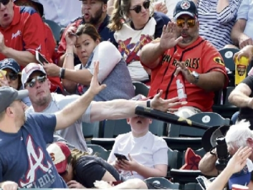 ▼肖恩(Shaun Cunningham)擋下了朝兒子臉飛來的棒球棍,這張照片也讓他在網路上爆紅。