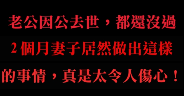 老公因公去世,都還沒過2個月妻子竟做出這樣的事情,真太令人傷心!