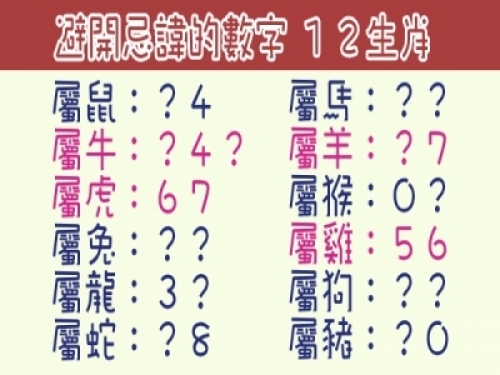 12生肖開運,快來看看你的忌諱數字是哪些唷!!
