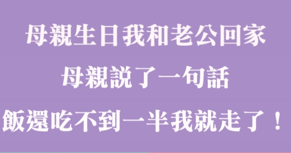 大家好,我是有錢人這麼想小編Choco!今天要來說說關於母親生日我和老公回家幫忙慶祝,母親說了句話,飯還吃不到一半我就走了!的事!不知道大家對於這個有多了解呢?一起來看看吧!
