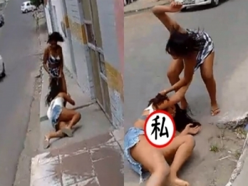 短褲正妹當街大打出手,一位女子還被「扒光」衣服了!網友:「太殘忍,但身材真好!」