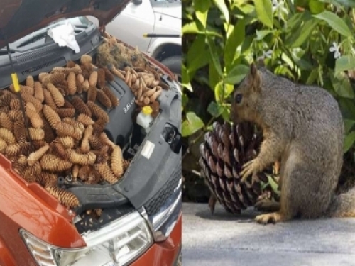 引擎蓋裡藏好藏滿的「22公斤松果」!車主一怒之下全部清空!松鼠表示:「我的食物 ....」