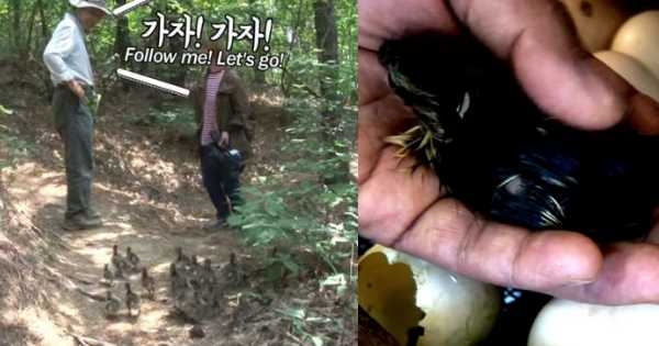 為了讓小鴨們可以擁有健康的身體,他每天都會帶著它們到山裡散步健行。