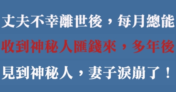 丈夫不幸離世後,每月總收到神秘人的匯錢來,多年後見到這位神秘人,妻子淚崩了!