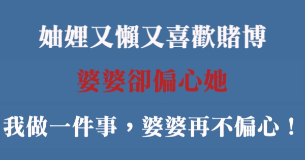 各位讀者安安阿~~我是有錢人這麼想小編Pineapple!今天要來說說關於「妯娌又懶又喜歡賭博,婆婆卻偏心她,我做一件事,婆婆再也不偏心了!!」,不知道大家有沒有興趣呢!一起來看看吧!