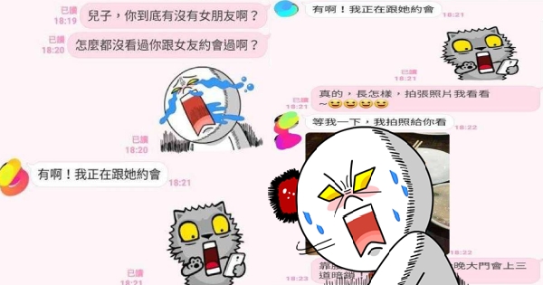 這位媽媽PO出自己和兒子的對話,媽媽問兒子有沒有女朋友,怎麼都沒有看過他和女友約會。兒子一本正經回答:「有啊,我正在跟她約會。」媽媽超驚喜。