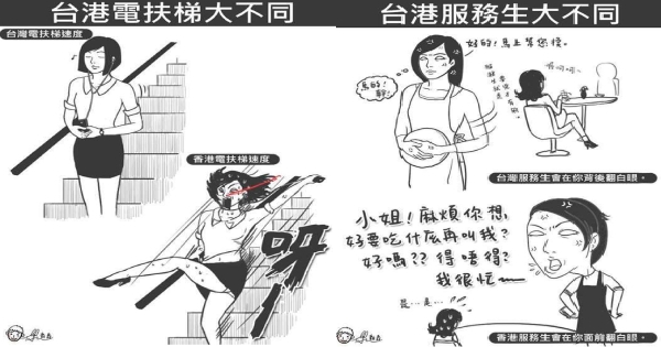 1. 台灣的服務業必須非常謙卑,但是香港只要遲疑一秒鐘就會遭服務生霸氣訓話!