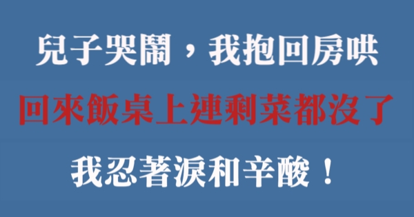 兒子哭鬧,我抱回房哄,回來飯桌上連剩菜都沒了,我忍著淚和辛酸!