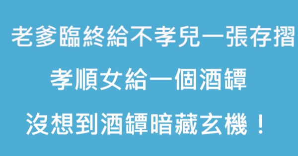 大家好,我是 Choco 今天來跟你說說 老爹臨終給不孝兒一張存摺,孝順女給一個酒罈,沒想到酒罈暗藏玄機!吧!讓我們來看看!