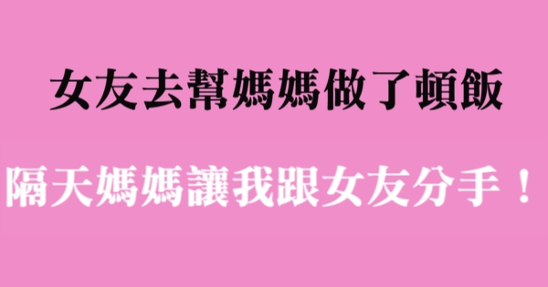 各位讀者安安阿~~我是有錢人這麼想小編Choco!今天要來說說關於「女友去幫媽媽做了頓飯,第二天媽媽讓我趁早跟女友分手!」,不知道大家有沒有興趣呢!一起來看看吧!