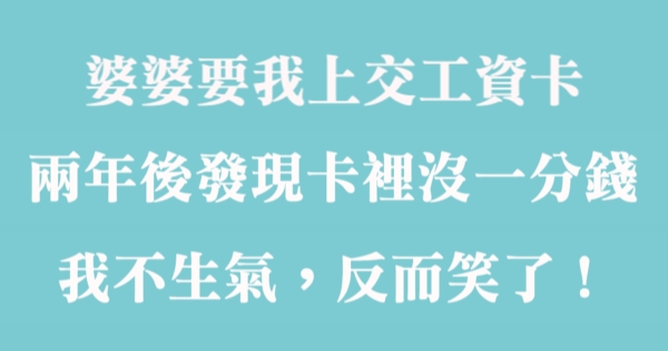 看完後是不是覺得Pineapple小編在有錢人這麼想分享的女人故事文章很好呢?想看更多好文,或是喜歡有錢人這麼想的文章的話,可以按讚追蹤女人幫幫忙並分享這篇婆婆要我上交工資卡,兩年後發現卡裡完全沒有一分錢,我不生氣,反而笑出來了!出去給大家一起看看喔!