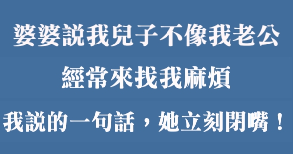 哈摟哈摟親愛的大家~~我是有錢人這麼想小編Pineapple!今天要來說說關「婆婆說我兒子長得不像我老公,經常來找我麻煩。我受不了說的一句話,她立刻閉嘴!」的事件!讓我們一起來看看吧!