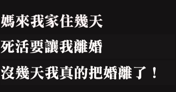 各位讀者安安阿~~我是有錢人這麼想小編Choco!今天要來說說關於「媽來我家住幾天,死活要讓我離婚,沒幾天我真的把婚離了!」,不知道大家有沒有興趣呢!一起來看看吧!