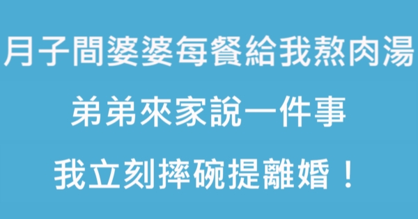 我月子期間婆婆每餐都給我熬肉湯,弟弟來家說件事,我馬上摔碗提離婚!