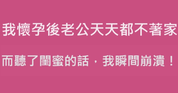 看完後是不是覺得Choco小編在有錢人這麼想分享的女人故事文章很好呢?想看更多好文,或是喜歡有錢人這麼想的文章的話,可以按讚追蹤女人兩性話題並分享這篇我懷孕後老公竟然就天天都不著家,而聽了閨蜜的話,我瞬間崩潰大哭!出去給大家一起看看喔!