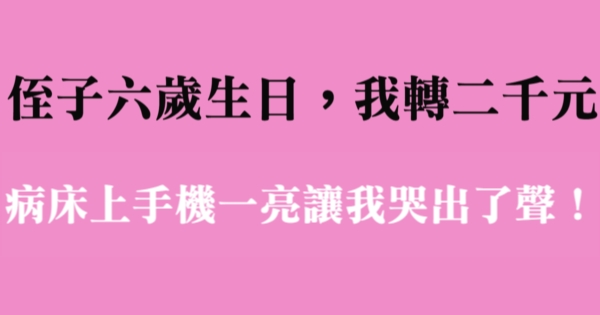 哈摟哈摟各位讀者~~我是有錢人這麼想小編Choco!今天要來說說關於「侄子六歲生日,我轉過去二千元錢,病床上手機一亮讓我哭出了聲!」,不知道大家有沒有興趣呢!一起來看看是怎麼樣的事吧!