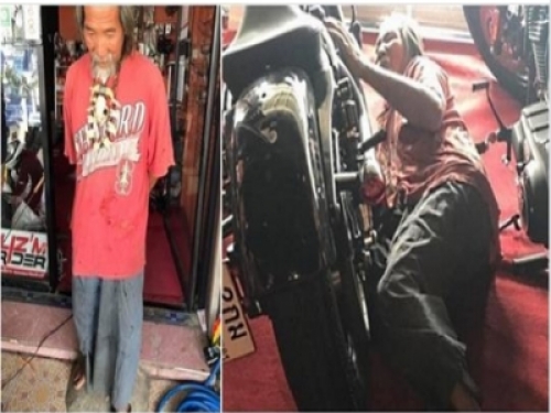 日前,泰國一位衣著破爛、打扮邋遢的老伯,上門到來到男人最愛的「重機店」逛逛,而且一逛就是很久!