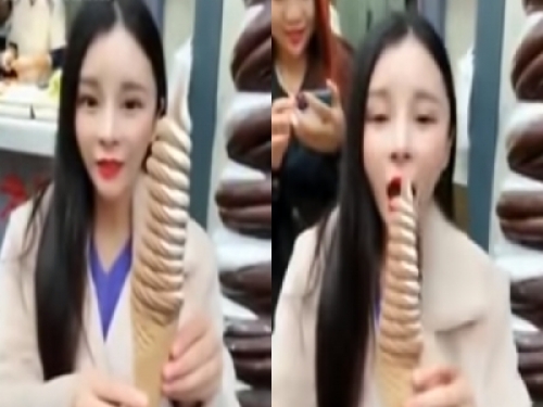 正妹拿著冰淇淋在鏡頭前表演「絕技」!驚人瞬間忍不住重播,鄉民嚇瘋:不科學阿!