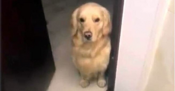 主人看金金一直在門口不進來,走過去一看,主人當場被暖哭了!這狗真的是個暖男QQ