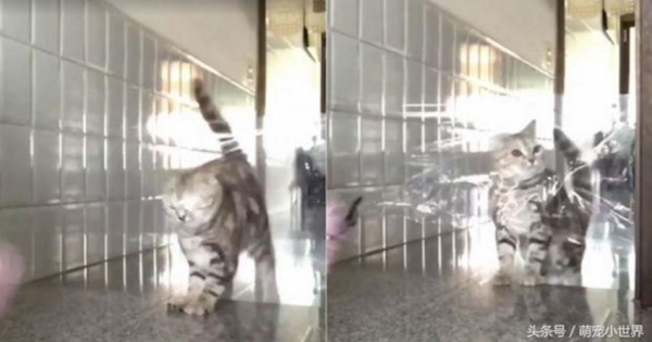 喵喵被主人設計,一頭撞上保鮮膜,呆呆站在原地懵了:本喵剛剛是被整了嘛!