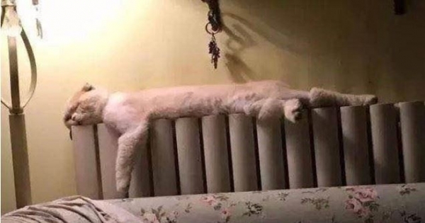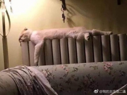 由於天氣太冷,網友家裡的貓咪倒是聰明,晚上睡覺的時候直接躺在暖氣片上睡覺,隻是牠躺著睡覺的姿勢總感覺不太對