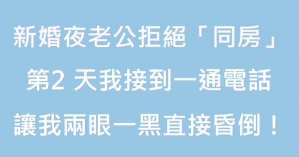 新婚夜老公拒絕「同房」,我拳腳相向,第2天接到一通電話,讓我兩眼一黑直接昏倒!