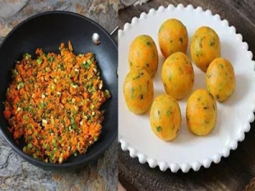 2、胡蘿蔔去皮,擦成細絲再剁碎;香蔥洗淨後切碎;