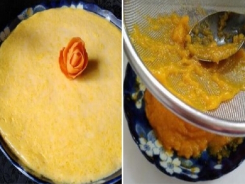 (3).然後把雞蛋牛奶液過濾到剛弄的南瓜泥裡面去。