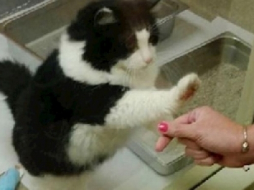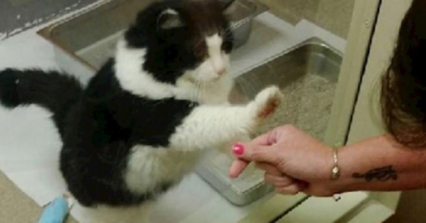 這隻13歲的貓咪在收養所裡面呆了很久都沒有被人領養,對於13歲的老貓來講,牠自己心裡應該還是有感知了,後來,為了能被領養,隻要看見有領養人經過牠面前,這隻老貓就會站起來跟人賣萌。