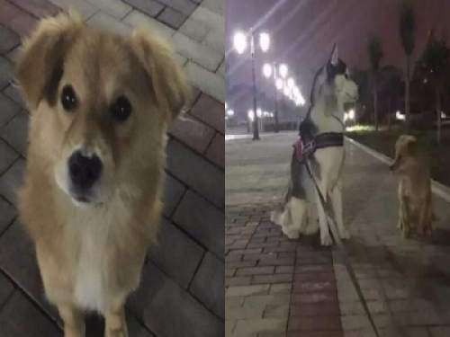 不管主人怎麼說,浪浪都不肯離開,正當他不知道該怎麼辦的時候,哈士奇突然走上前,坐在浪浪的面前,用眼神跟浪浪交流了一陣子,一開始主人還以為哈士奇吃醋了,正在捍衛主權,希望浪浪離遠一點!!!