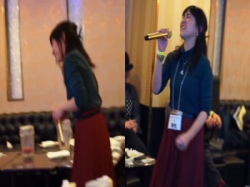 一開始本來還害羞地婉拒邀請,點唱了歌手米希亞(MISIA)的《現在好想見你》,才唱第一句就讓大家安靜了下來,影片一上傳到推特就造成網友轟動!!!