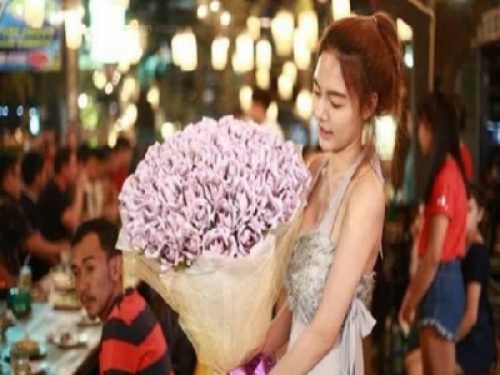 並用500泰銖(約450元台幣)的紙鈔、共10萬泰銖(約新台幣9.5萬元)現鈔摺成玫瑰花,就這樣現金花束就誕生了~