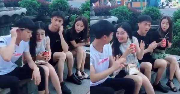 但你們真的不覺得以他們的角度其實是看得到吸管的嗎?好吧~先不管這個!此時另一名男子馬上把吸管拿起來放到最後面女孩的可樂裡面!只能說「真是一位得力助手」啊!