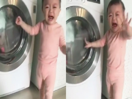 小寶寶在洗衣機前哭天喊地,痛哭到不能自己,媽媽上前關心發生什麼事,才知道原來是......