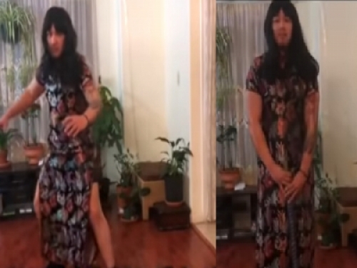 只見畫面中的媽媽長髮披肩、身穿長袍和配樂的加持