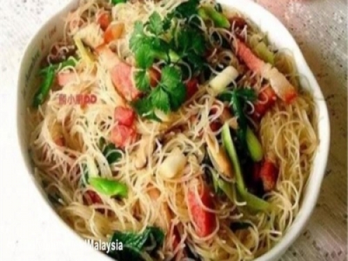 8。水份不夠,可以加一些剛剛煮米粉的水,加適量的胡椒粉,滴兩滴香油提味 (加了醬油.臘肉本身會咸.燙米粉的水有加鹽巴)所以不用再調味了。