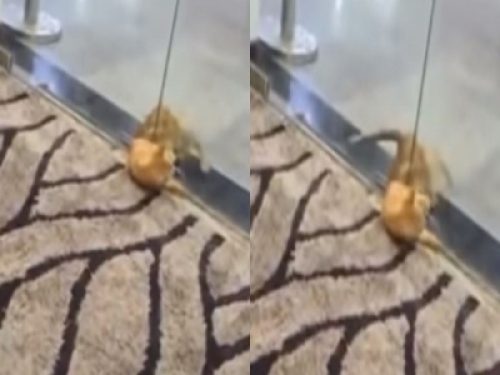 影片中可見,貓咪死命的想要鑽過門底下的小縫,可是這個縫的空間我們一看就知道,不是那種貓貓狗狗可以隨便就擠進去的縫,但這隻貓依然不肯放棄,繼續給牠拼命的鑽