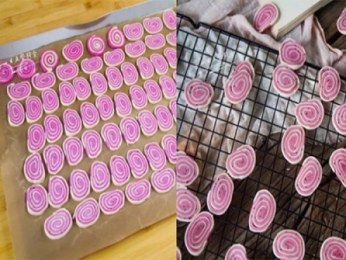 粉紅麵團:紅心火龍果泥35克,低筋麵粉65克,橄欖油16克,糖5克