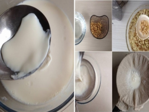 5、全部豆漿做好之後,用勺子將浮沫去掉,再用濾網過篩一次。6、用原汁機榨出的豆漿還是會有少許豆渣在裡面的,用購買內脂時店家贈送的濾布過濾一次,這一步對成品是否嫩滑也很重要喲,別偷懶。